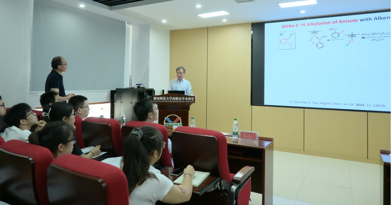 2025年10月6日上午日本理化学研究所侯召民教授受邀做客湖南师范大学化学化工学院并参观植化单体开发与利用湖南省重点实验室,随后在化学楼西维尔学术讲堂带来题为《Innovations in Organometallic Chemistry and Catalysis: From N2Activation to Self-Healing Polymers》的精彩学术报告。此次报告会由我院马元鸿教授主持,部分教师、研究生参加此次学术交流活动。