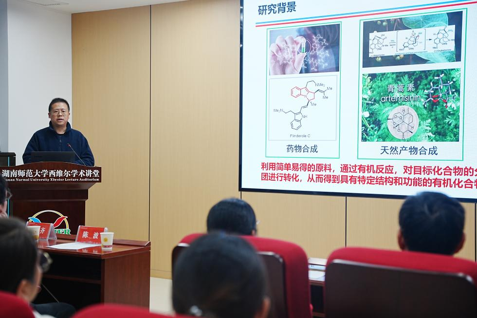 此次论坛由湖南师范大学交叉科学研究院、化学化工学院“植化单体开发与利用”湖南省重点实验室联合主办。来自中国农业科学院麻类研究所、校交叉科学研究院与化学化工学院“植化单体开发与利用”湖南省重点实验室的师生共计50余人参与了此次论坛。