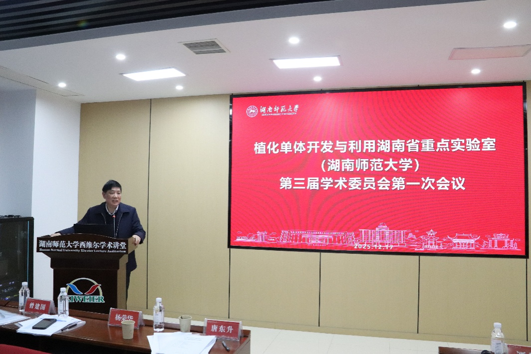 2025年12月17日,“植化单体开发与利用”湖南省重点实验室第三届学术委员会第一次会议在我校化学化工学院召开,北京大学叶敏教授、湖南农业大学曾建国教授、湖南中医药大学王炜教授、武汉大学周强辉教授、浙江大学王建博教授、武汉大学李武教授、湖南大学岳磊教授、湖南师范大学陈波教授和马元鸿教授等学术委员会委员参会,学校科技处唐东升处长出席本次会议,会议由化学化工学院党委书记谭东波书记、学术委员会主任叶敏教授共同主持。