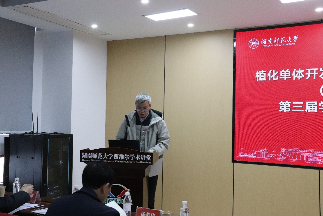 杨荣华院长代表学院作表态发言。他认为,将植化单体分析和化学合成相结合,具有十分重要的意义,学院将进一步加大对重点实验室的支持力度。科技处处长助理陶文娜代表学校作表态发言,她表示学校将一如既往地支持实验室建设,希望实验室多出成果。“植化单体开发与利用”湖南省重点实验室师生代表40余人参加会议。
